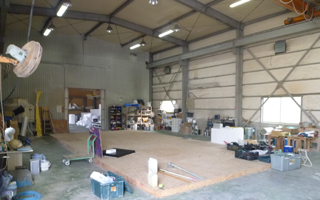 高知県高知市にあるm.e.works本社工場では、1500平方メートルに及ぶ巨大な製作スペースを確保。巨大なサイズの外装や造形物をまるごと作り上げることが可能です。