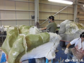 設計:工程や設置方法を構築し、図面を作成します(AutoCAD使用) 製作:発泡スチロール等を切削し原型をつくり、主にFRPで表面加工し立体造形物を製作します.。 仕上がりイメージを掴むため、お客様とのやり取りも重要です。 受注生産のため製作物は毎回異なりますので、都度製作方法などを練って進めていきます。 |